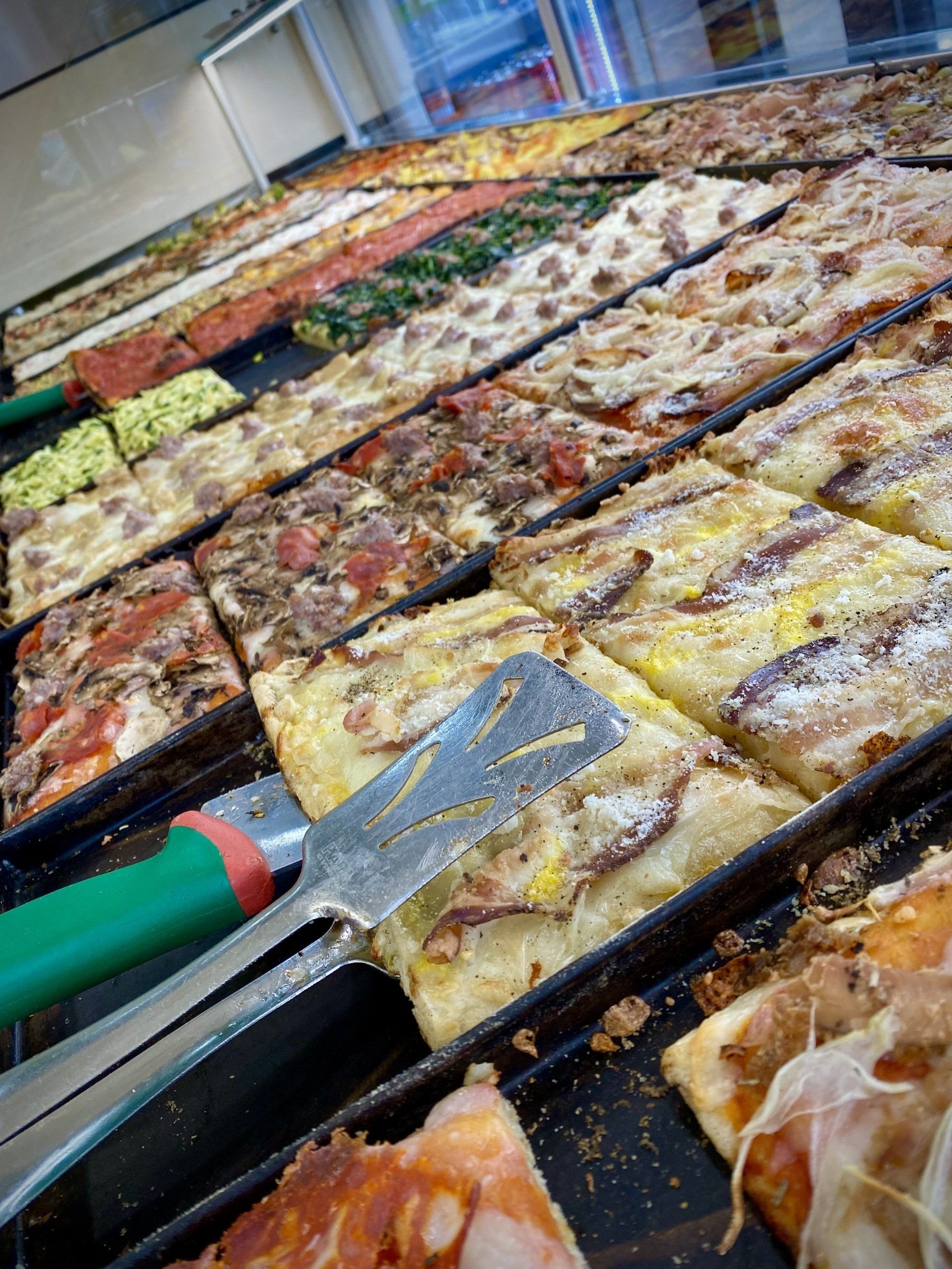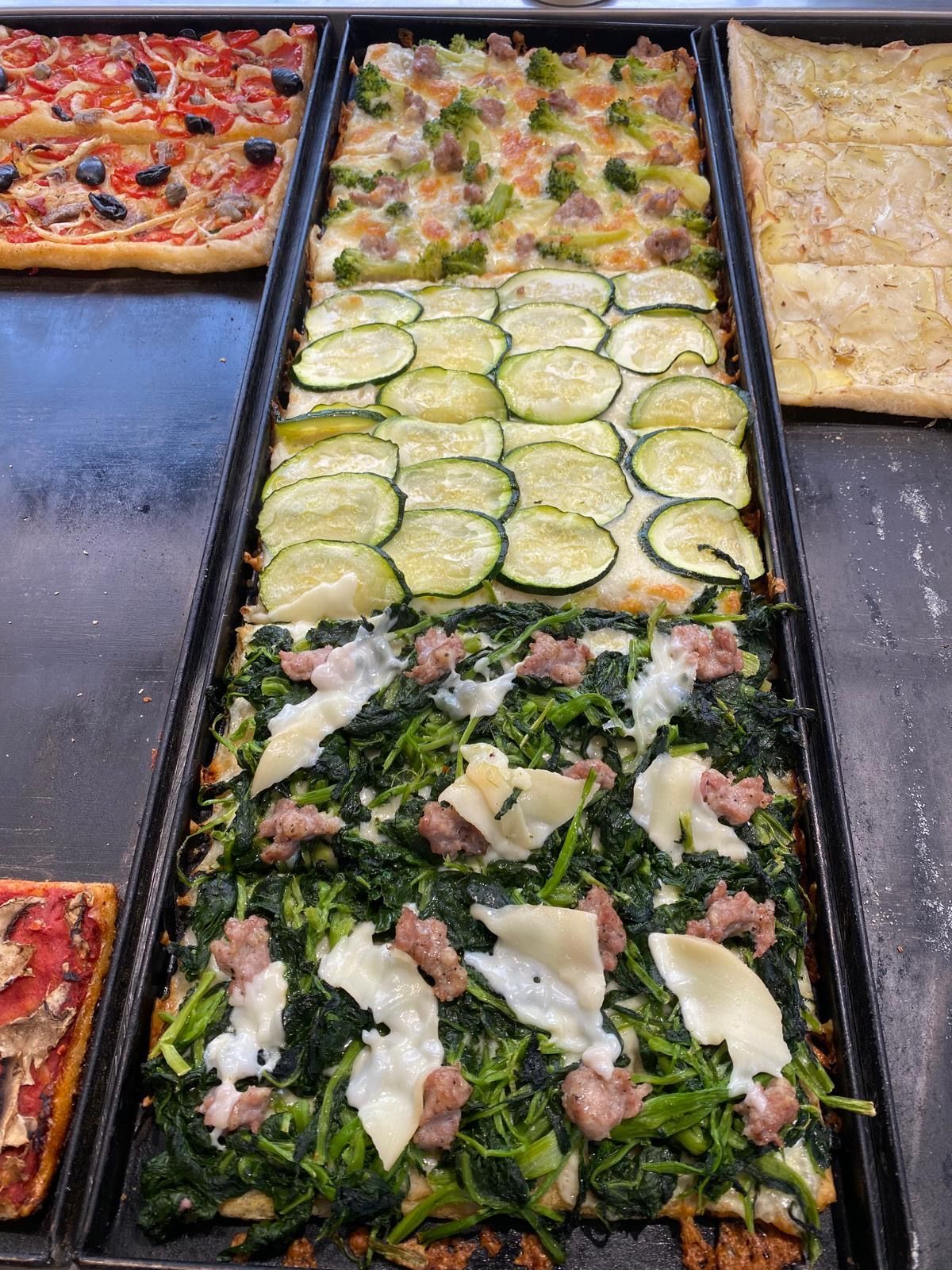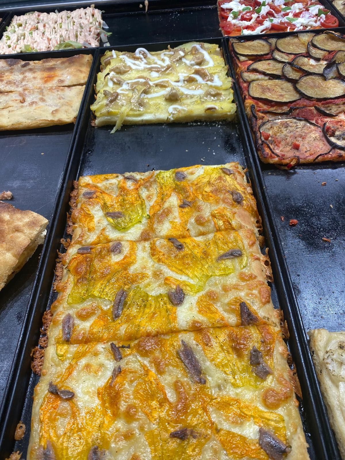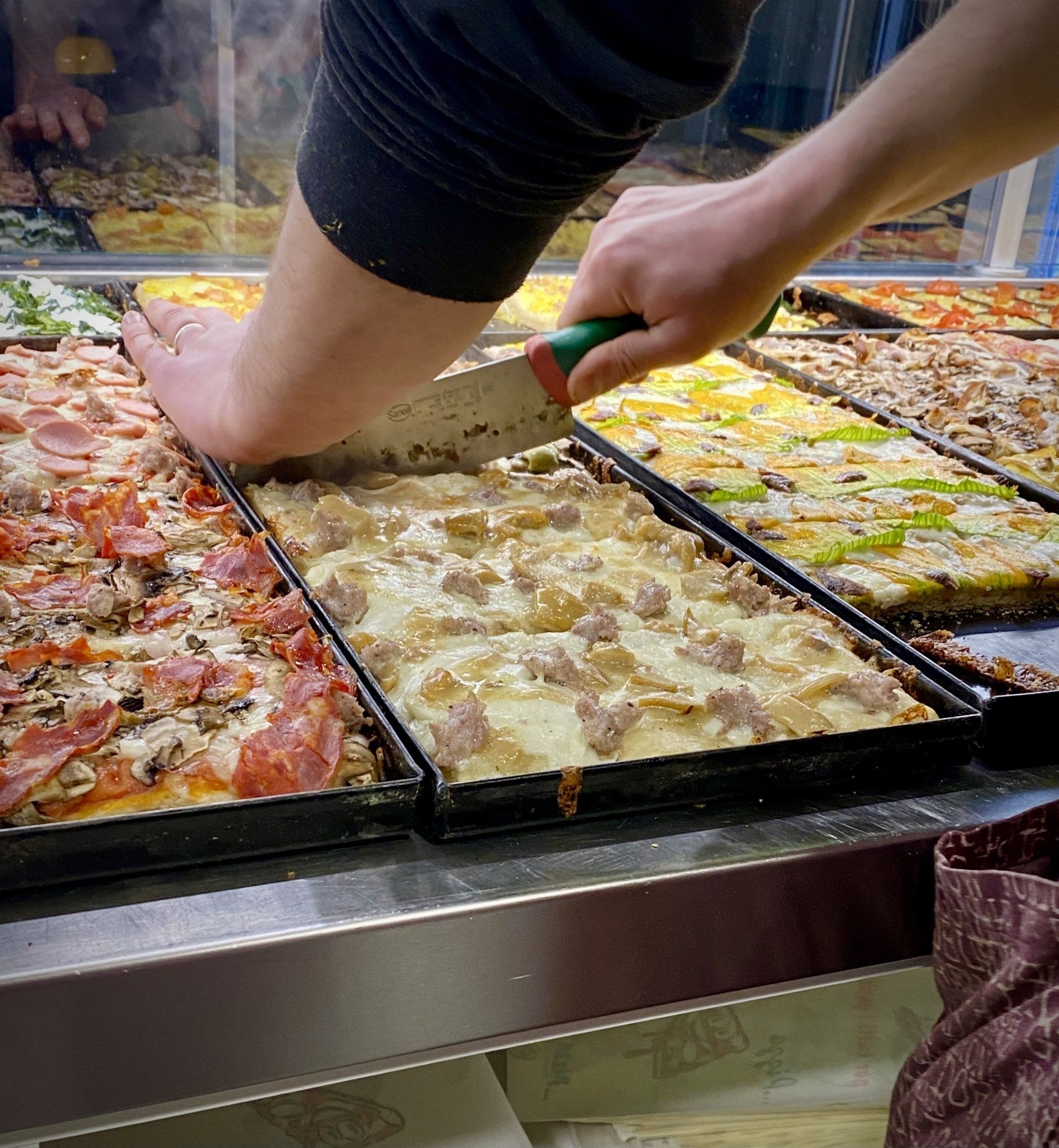 Da tanti anni ci occupiamo di pizza al taglio utilizzando ingredienti di qualità per ottenere diverse proposte e soddisfare tutte le esigenze dei clienti. In particolare siamo in grado di proporre quotidianamente oltre 90 tipologie differenti di pizze. La proposta parte con le pizze al taglio più tradizionali come la margherita con pomodoro e mozzarella o la versione che prevede l'utilizzo di salame piccante e l'intramontabile marinara. Ci sono poi i gusti più moderni che prevedono ingredienti meno consueti per le pizze come il pesce fresco, le verdure, il Grana Padano, il parmigiano e i salumi di qualsiasi tipologia. Se vuoi apprezzare le pizze in ogni declinazione di gusto, vieni a trovarci.