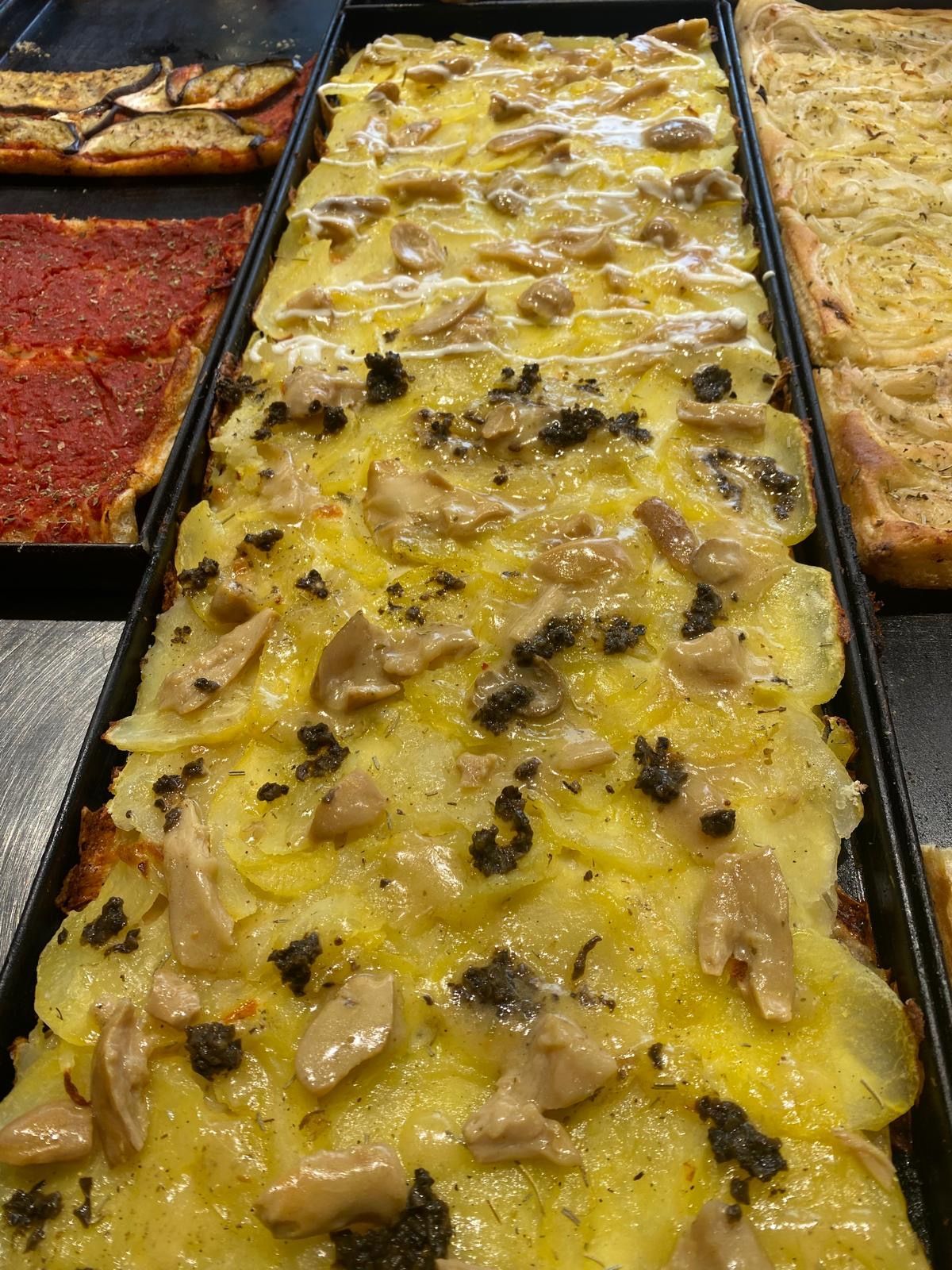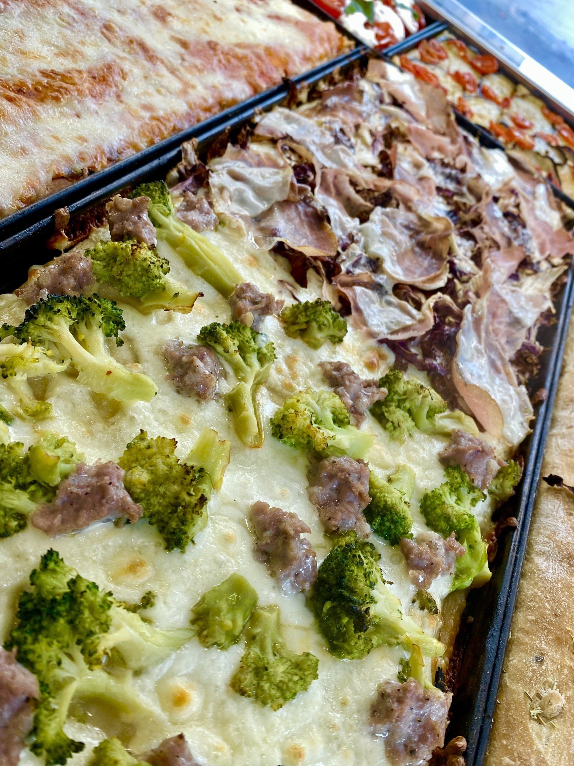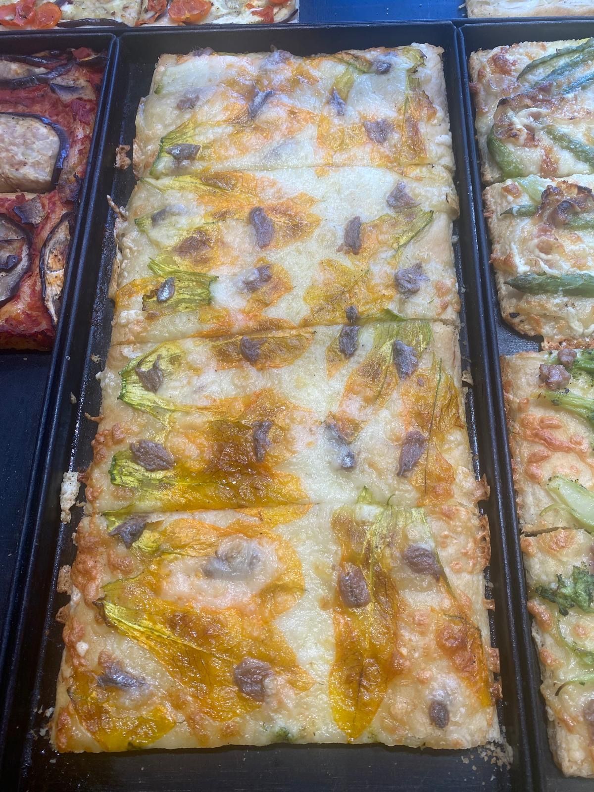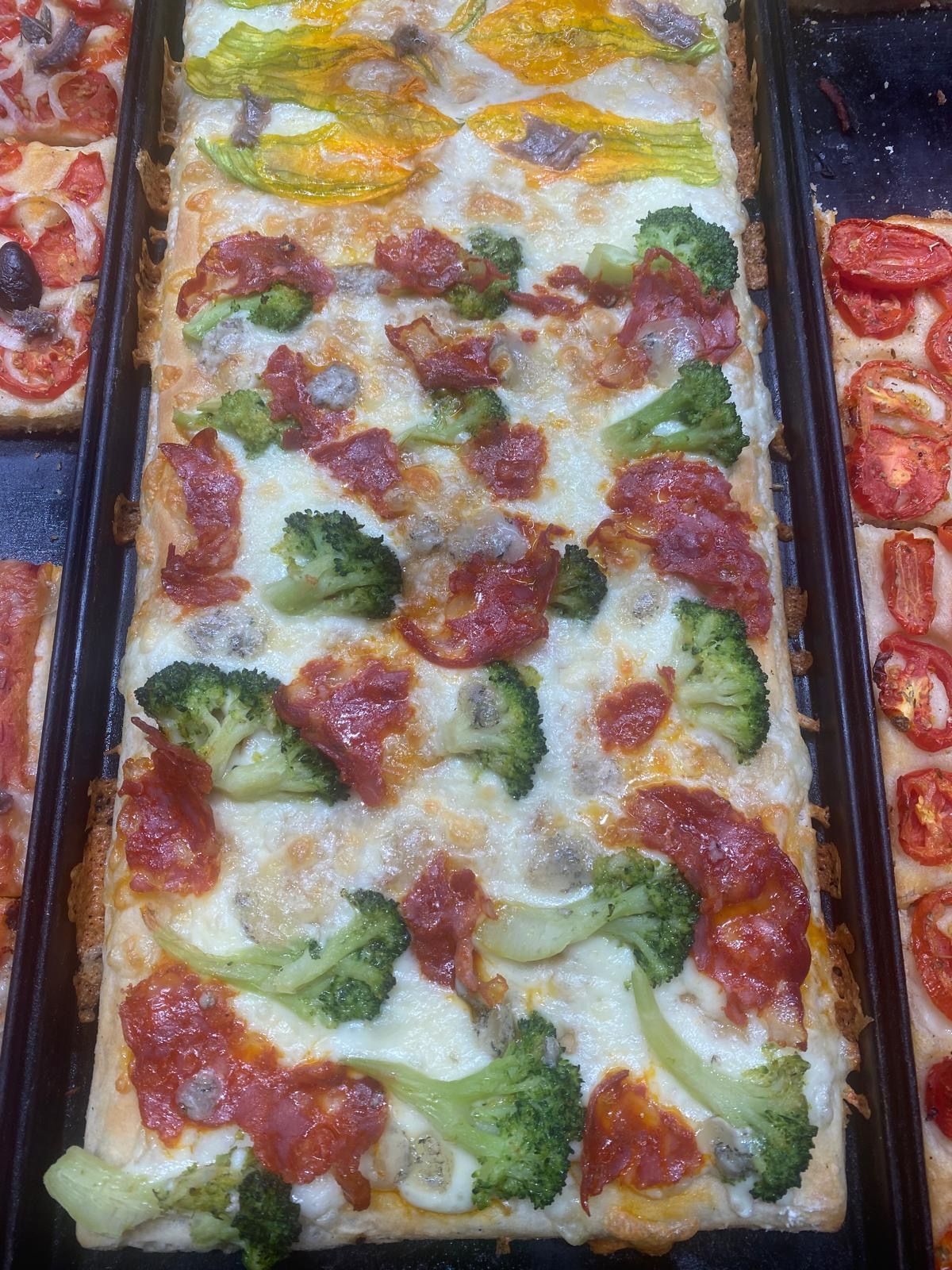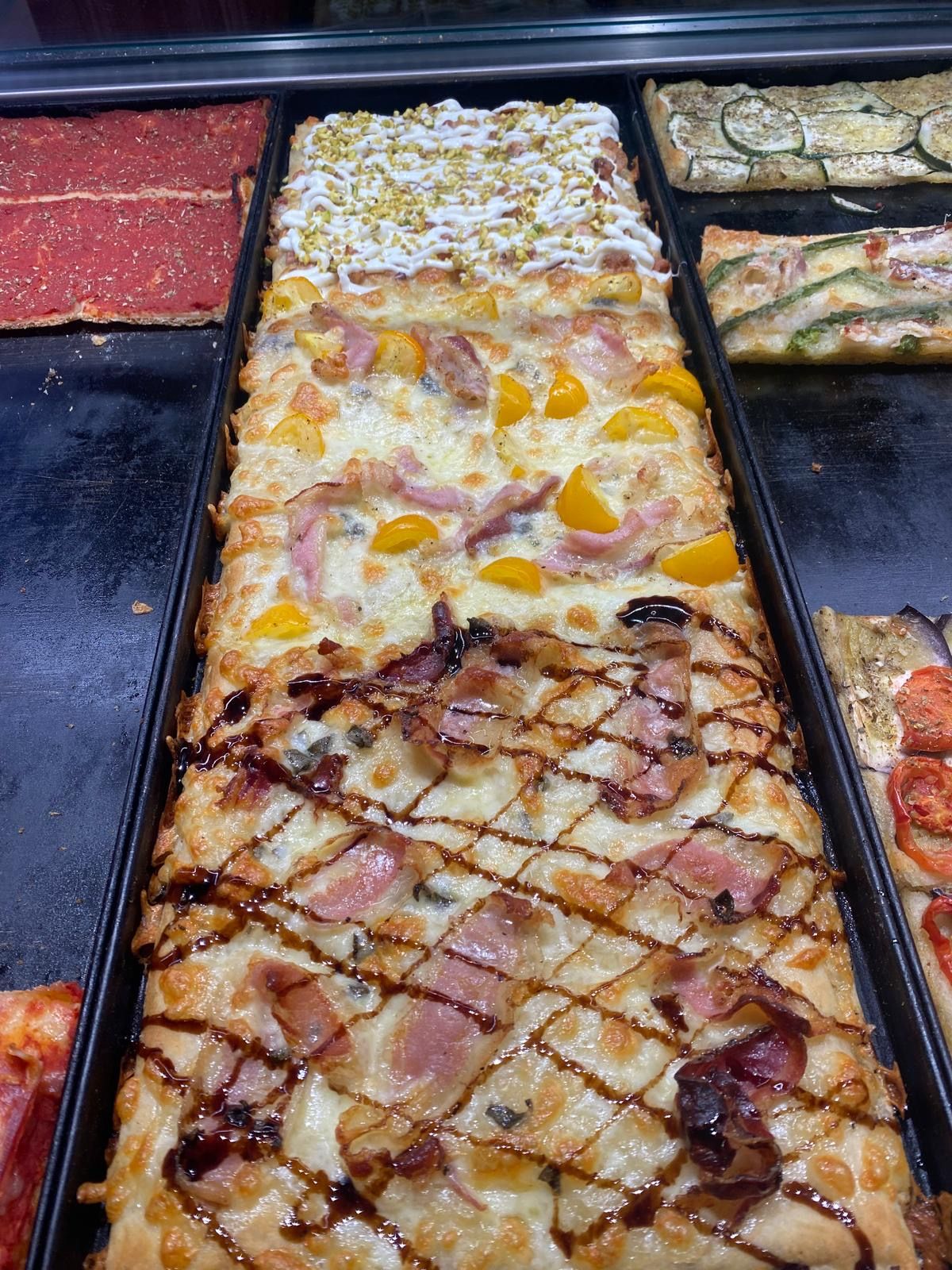 Da tanti anni ci occupiamo di pizza al taglio utilizzando ingredienti di qualità per ottenere diverse proposte e soddisfare tutte le esigenze dei clienti. In particolare siamo in grado di proporre quotidianamente oltre 90 tipologie differenti di pizze. La proposta parte con le pizze al taglio più tradizionali come la margherita con pomodoro e mozzarella o la versione che prevede l'utilizzo di salame piccante e l'intramontabile marinara. Ci sono poi i gusti più moderni che prevedono ingredienti meno consueti per le pizze come il pesce fresco, le verdure, il Grana Padano, il parmigiano e i salumi di qualsiasi tipologia. Se vuoi apprezzare le pizze in ogni declinazione di gusto, vieni a trovarci.