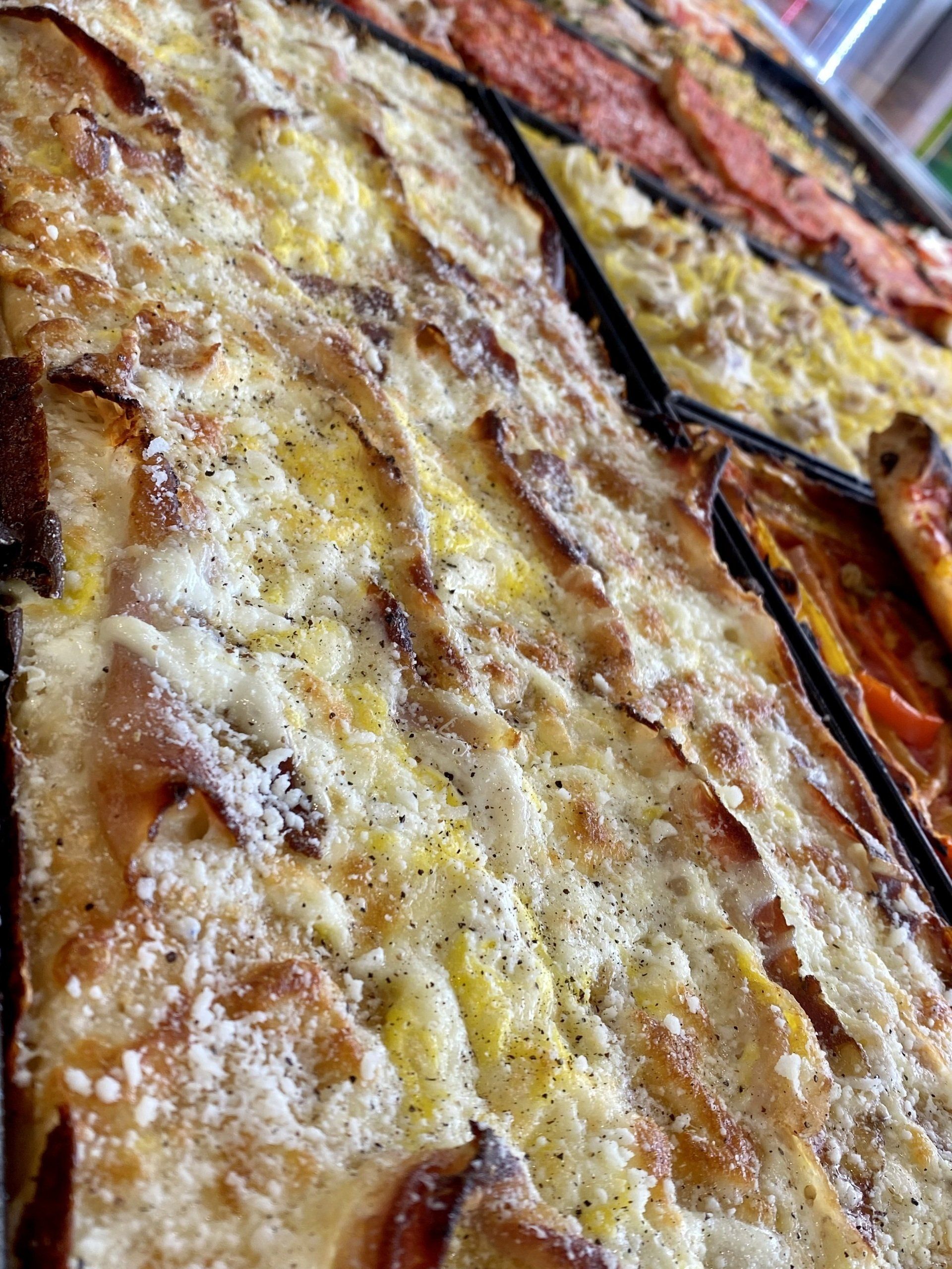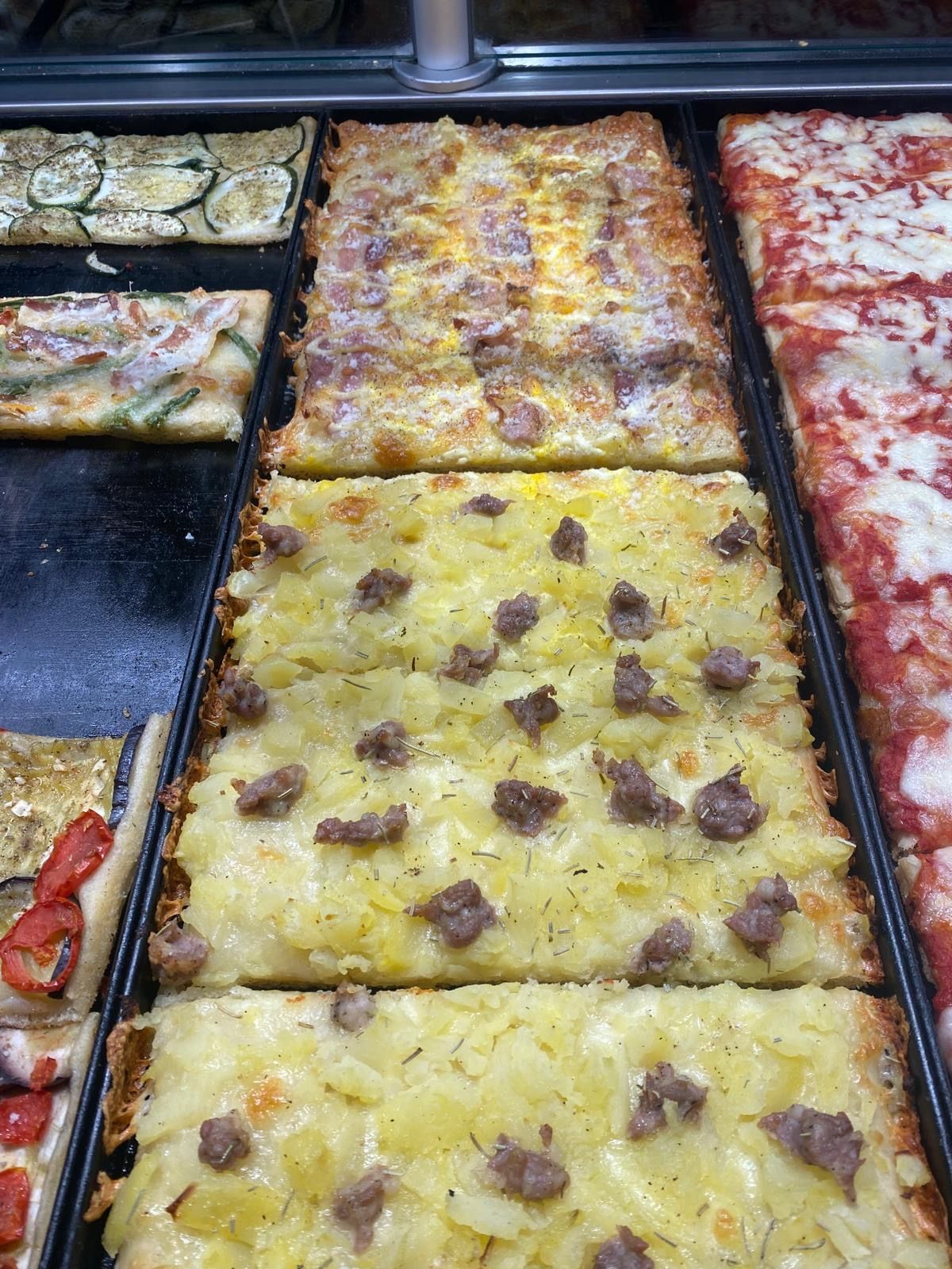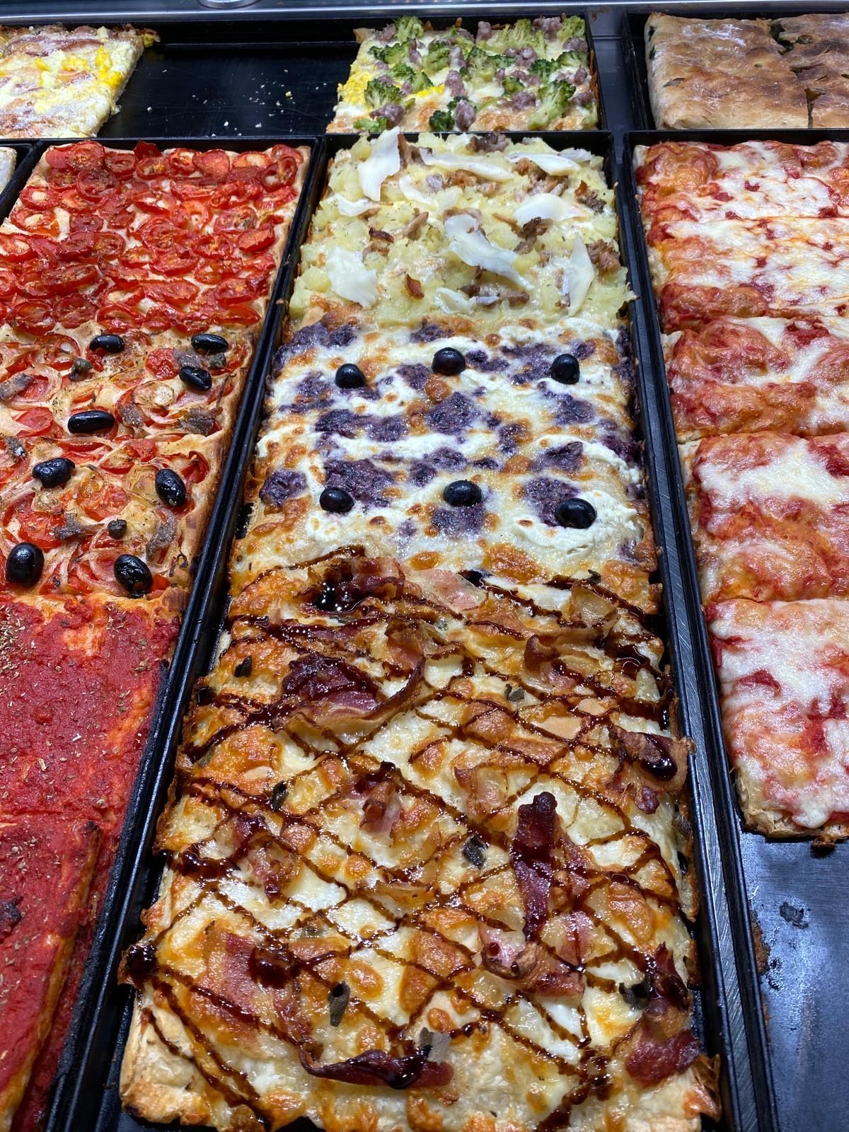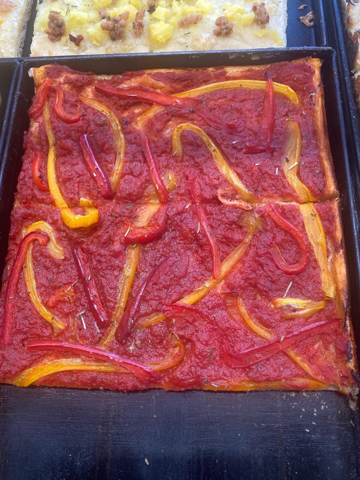 Da tanti anni ci occupiamo di pizza al taglio utilizzando ingredienti di qualità per ottenere diverse proposte e soddisfare tutte le esigenze dei clienti. In particolare siamo in grado di proporre quotidianamente oltre 90 tipologie differenti di pizze. La proposta parte con le pizze al taglio più tradizionali come la margherita con pomodoro e mozzarella o la versione che prevede l'utilizzo di salame piccante e l'intramontabile marinara. Ci sono poi i gusti più moderni che prevedono ingredienti meno consueti per le pizze come il pesce fresco, le verdure, il Grana Padano, il parmigiano e i salumi di qualsiasi tipologia. Se vuoi apprezzare le pizze in ogni declinazione di gusto, vieni a trovarci.