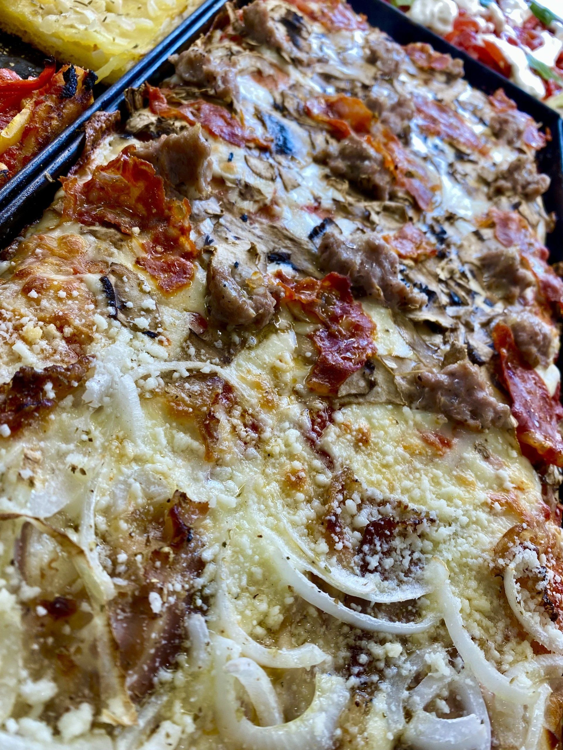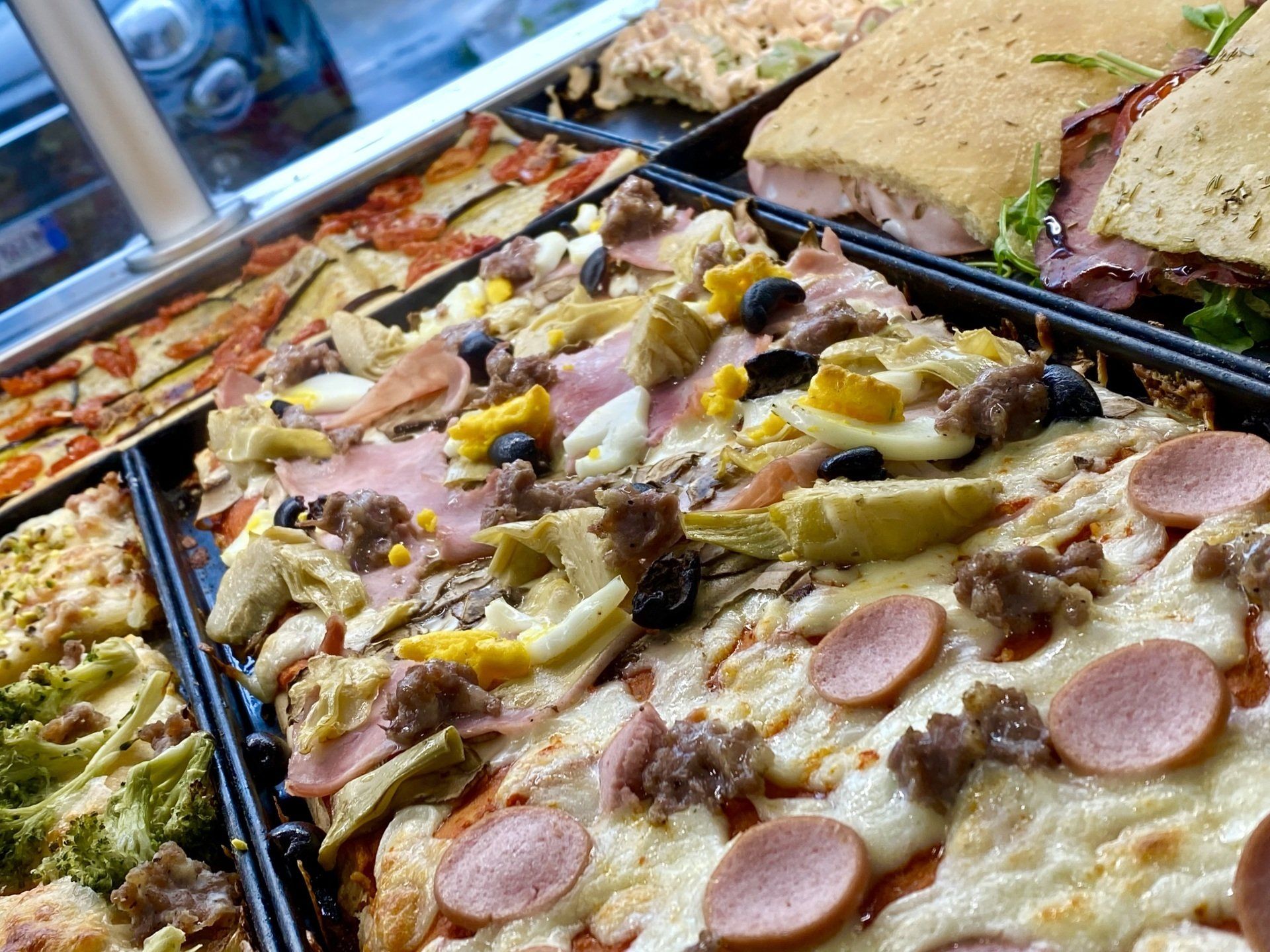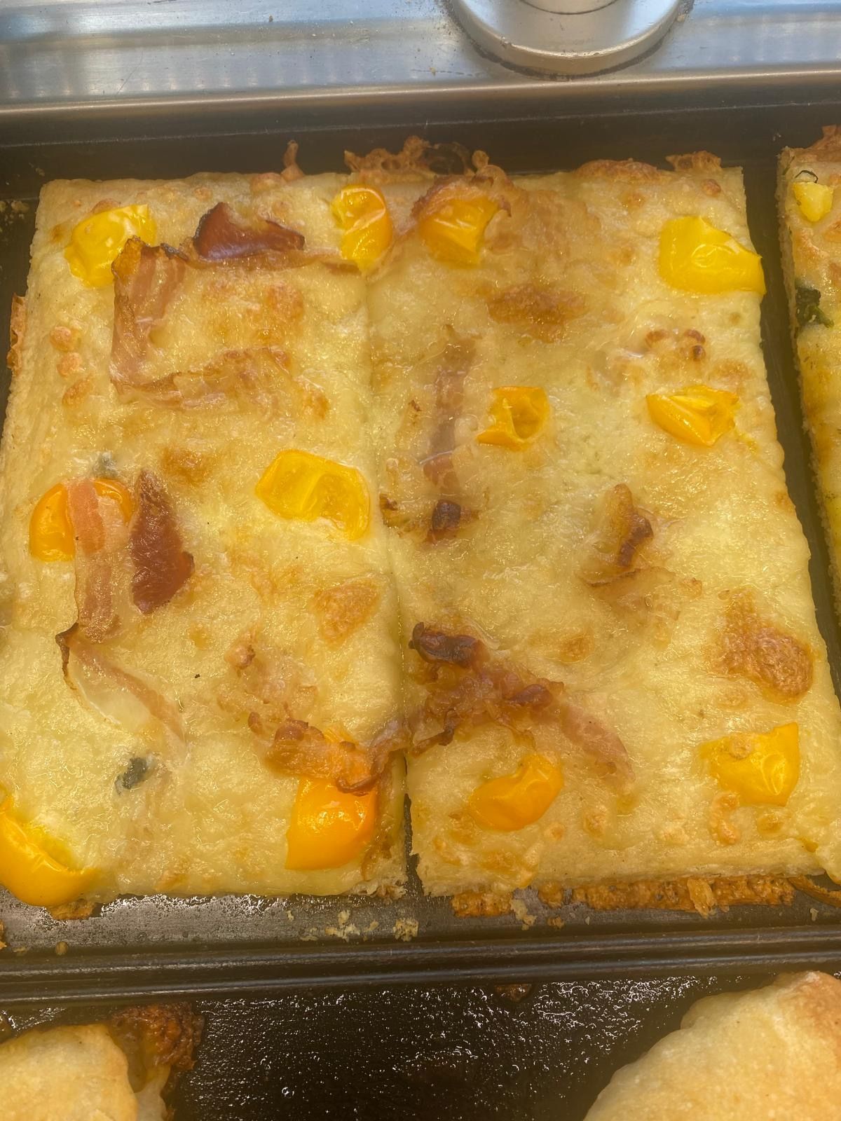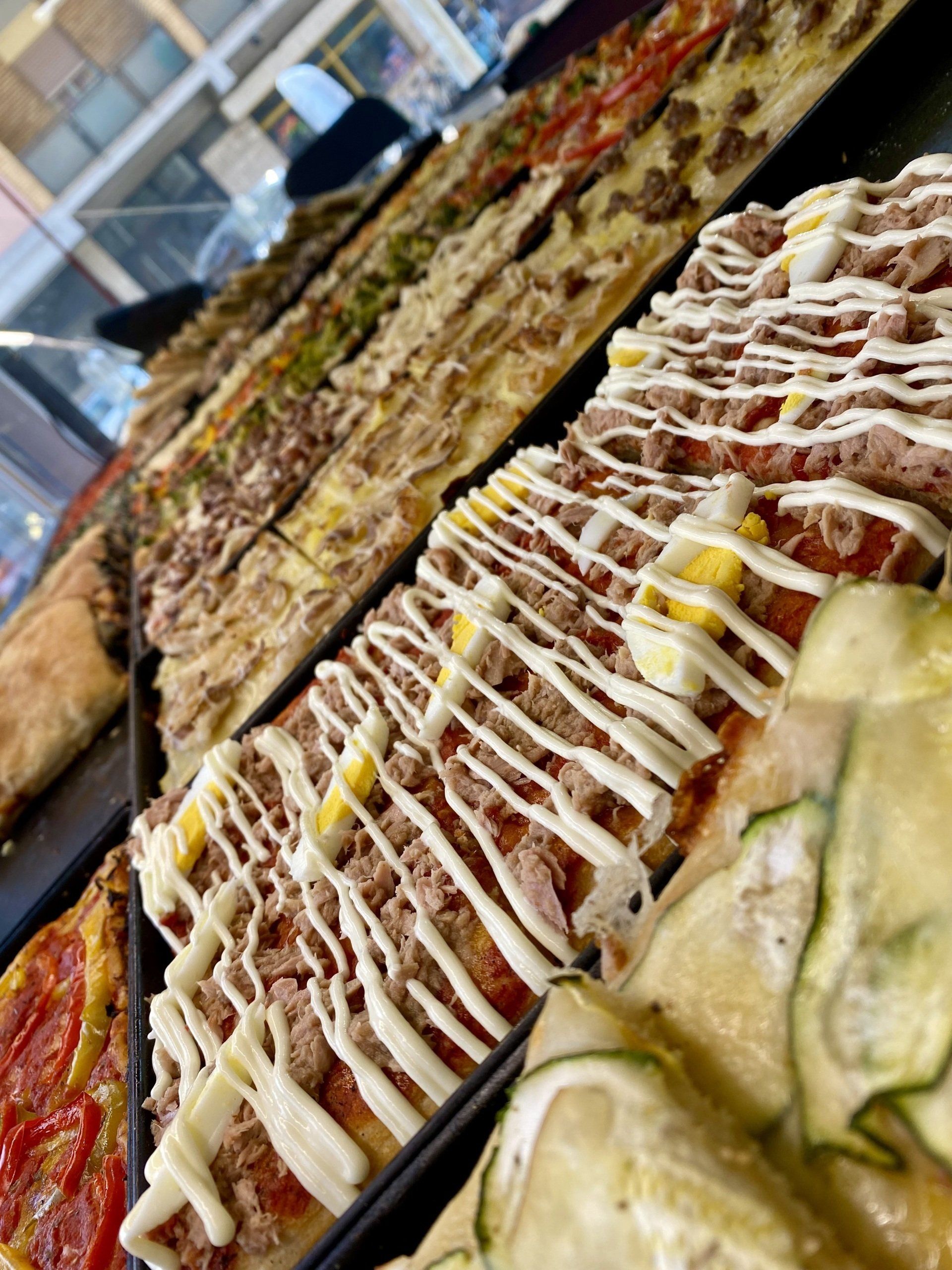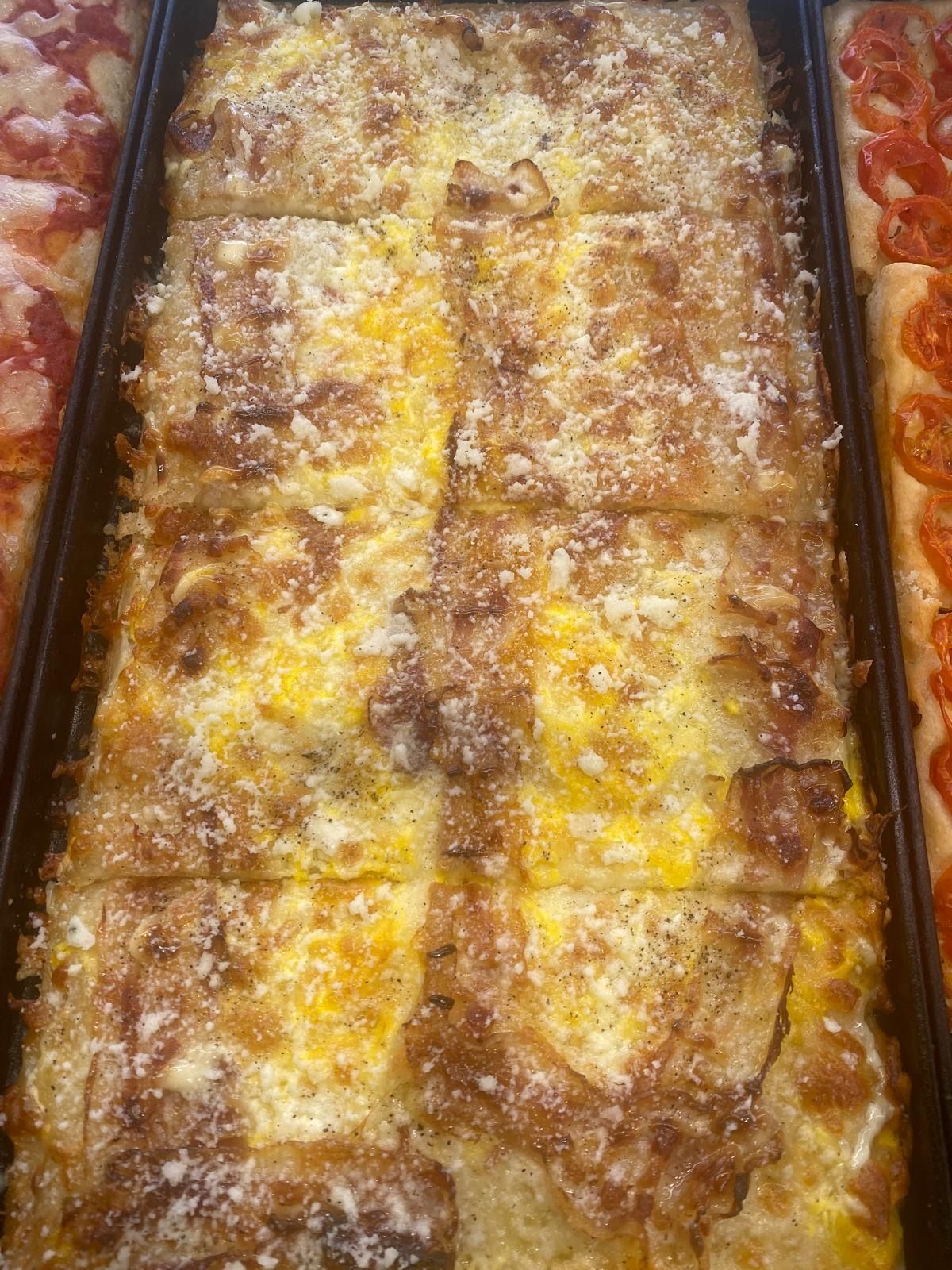 Da tanti anni ci occupiamo di pizza al taglio utilizzando ingredienti di qualità per ottenere diverse proposte e soddisfare tutte le esigenze dei clienti. In particolare siamo in grado di proporre quotidianamente oltre 90 tipologie differenti di pizze. La proposta parte con le pizze al taglio più tradizionali come la margherita con pomodoro e mozzarella o la versione che prevede l'utilizzo di salame piccante e l'intramontabile marinara. Ci sono poi i gusti più moderni che prevedono ingredienti meno consueti per le pizze come il pesce fresco, le verdure, il Grana Padano, il parmigiano e i salumi di qualsiasi tipologia. Se vuoi apprezzare le pizze in ogni declinazione di gusto, vieni a trovarci.